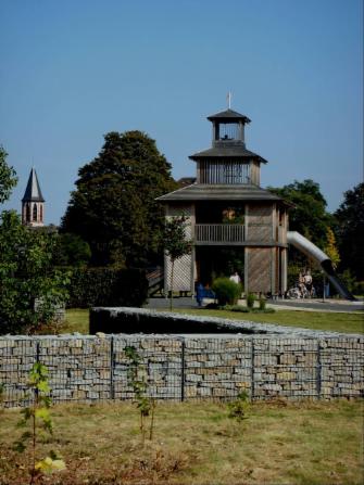 Oben u. unten: Moderne Nachahmung des ehemaligen Burgtores als "Spielturm"