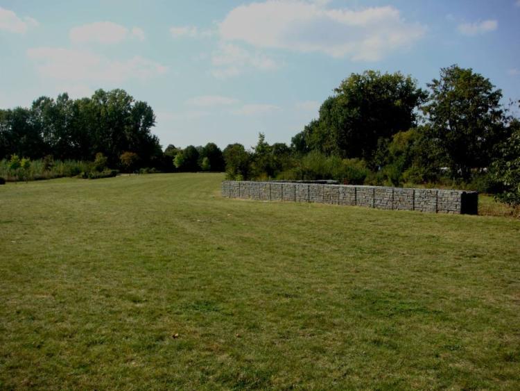 Above: The position of the fortress walls has been recreated using stone filled gabions, which can be explored throughout the extensive areal of the former fortress grounds. Parts of the moat surrounding the old fortress are clearly visible today. Here along Bastion Regina.