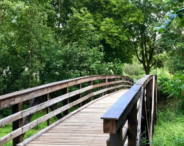 Below: The Fortress-Moat-Bridge spans what remains of the original, once extensive moat surrounding the former Gustavsburg fortress. The bridge links the Fortress Park with the Ochsenwiese Festival Grounds, where the famous Fortress Festival is celebrated on Whitsun Weekend each year.