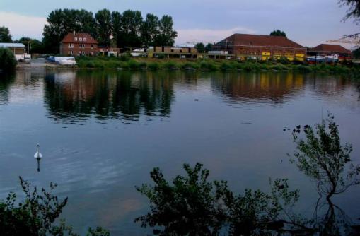 Above two Photos: The Gustavsburg Shipyards on the Main River, as seen from Kostheim.